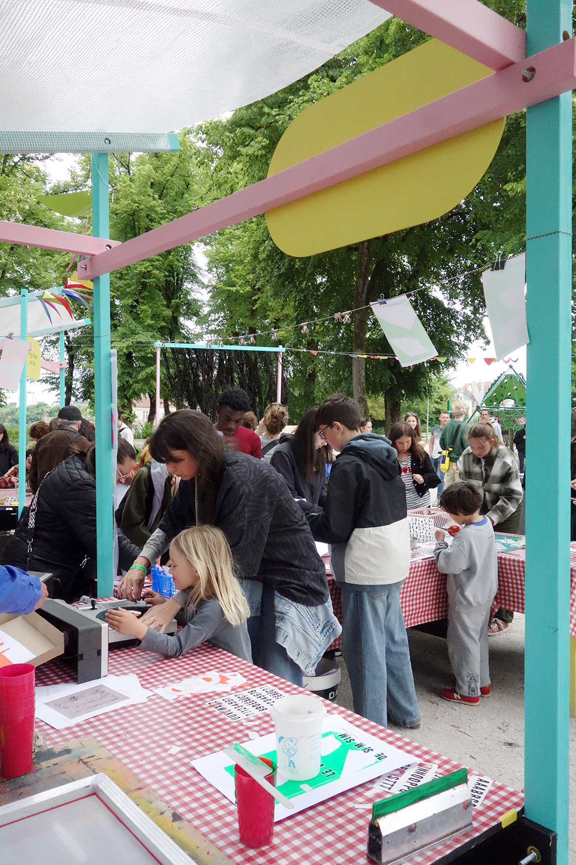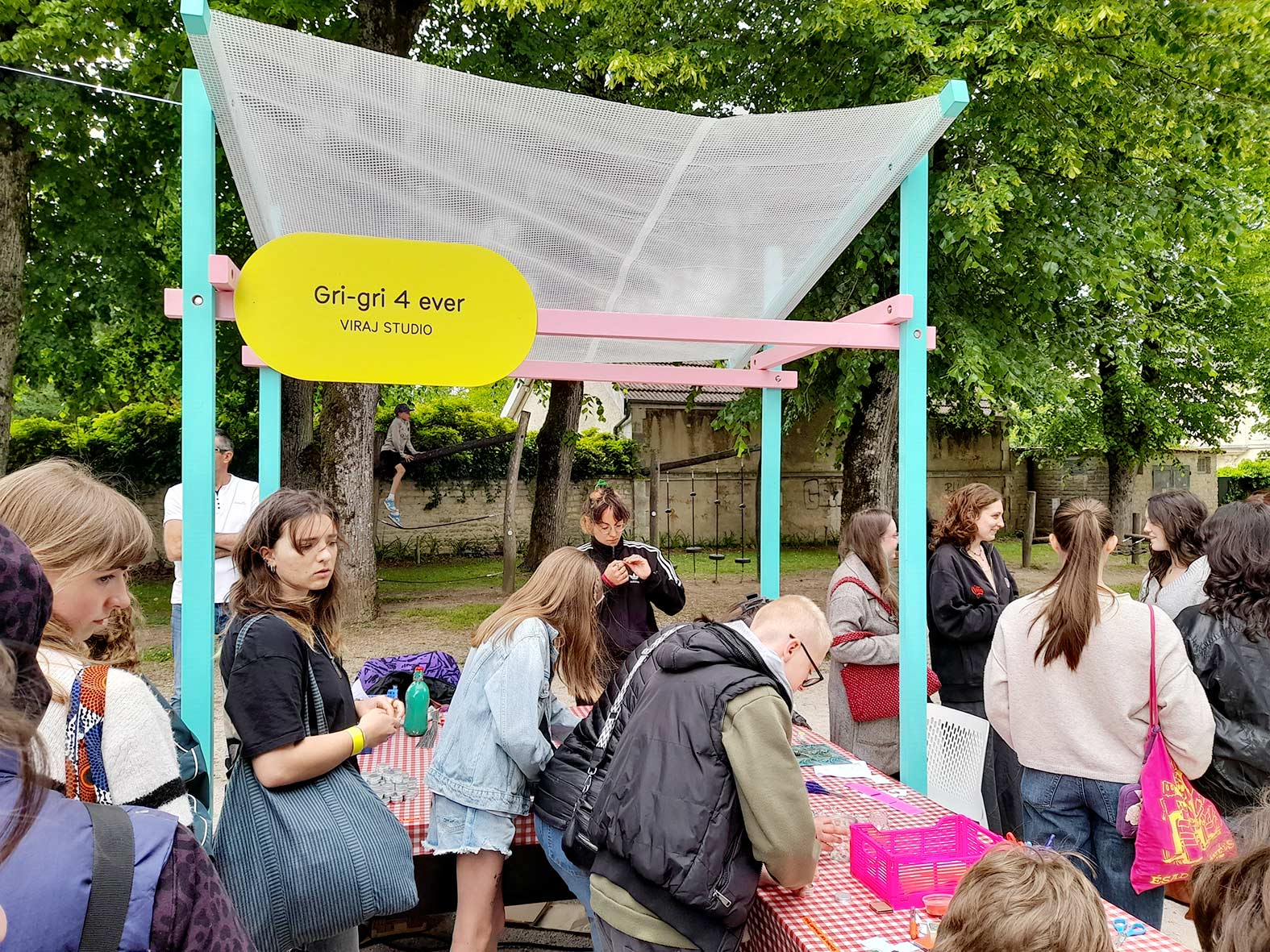 + 2 artistes/collectifs réuni.es autour du thème de la Biennale: Noise. Avec Maycec, et sa polycopieuse à toute épreuve (même au vent) pour l’atelier Musicographisme, et Viraj Studio avec qui on a pu fabriquer son gri-gri précieux et scintillant.