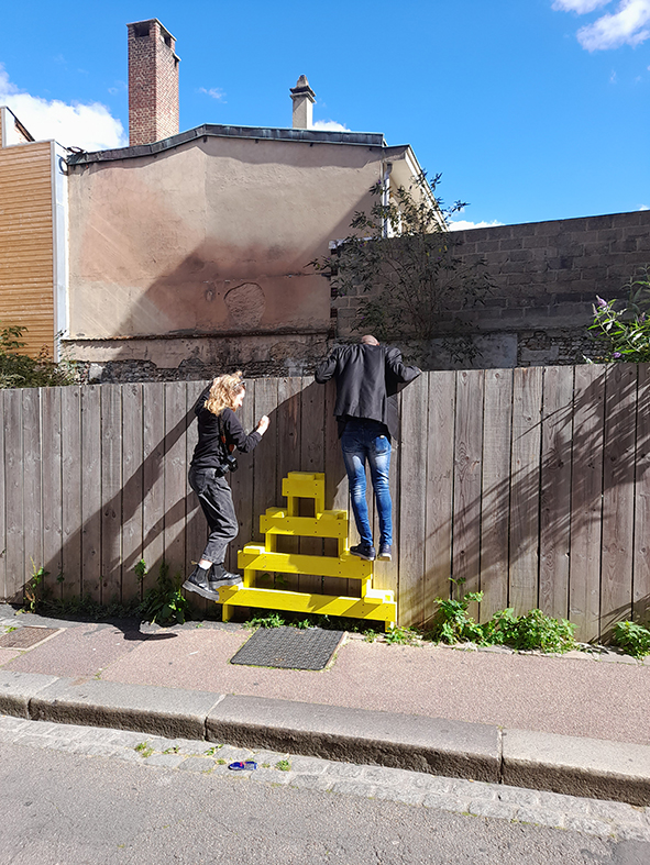Dorian Guérin et Delphine Boeschlin ont été retenu.es par la Maison de l’architecture de Normandie - Le Forum, pour une résidence d’architecture à Elbeuf, en Seine-Maritime, de mai à septembre 2022. Le duo a bénéficié de 6 semaines en immersion dans la ville pour concevoir et fabriquer des micro-architectures dans l’espace public.