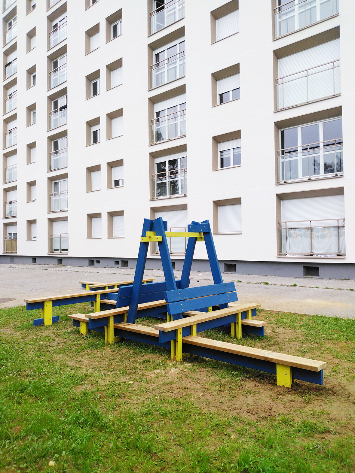 Depuis 2023, nous travaillons à la conception de mobiliers urbains transitoires dans le cadre de la rénovation du quartier Soquence au Havre, en partenariat avec le bailleur social Alcéane.